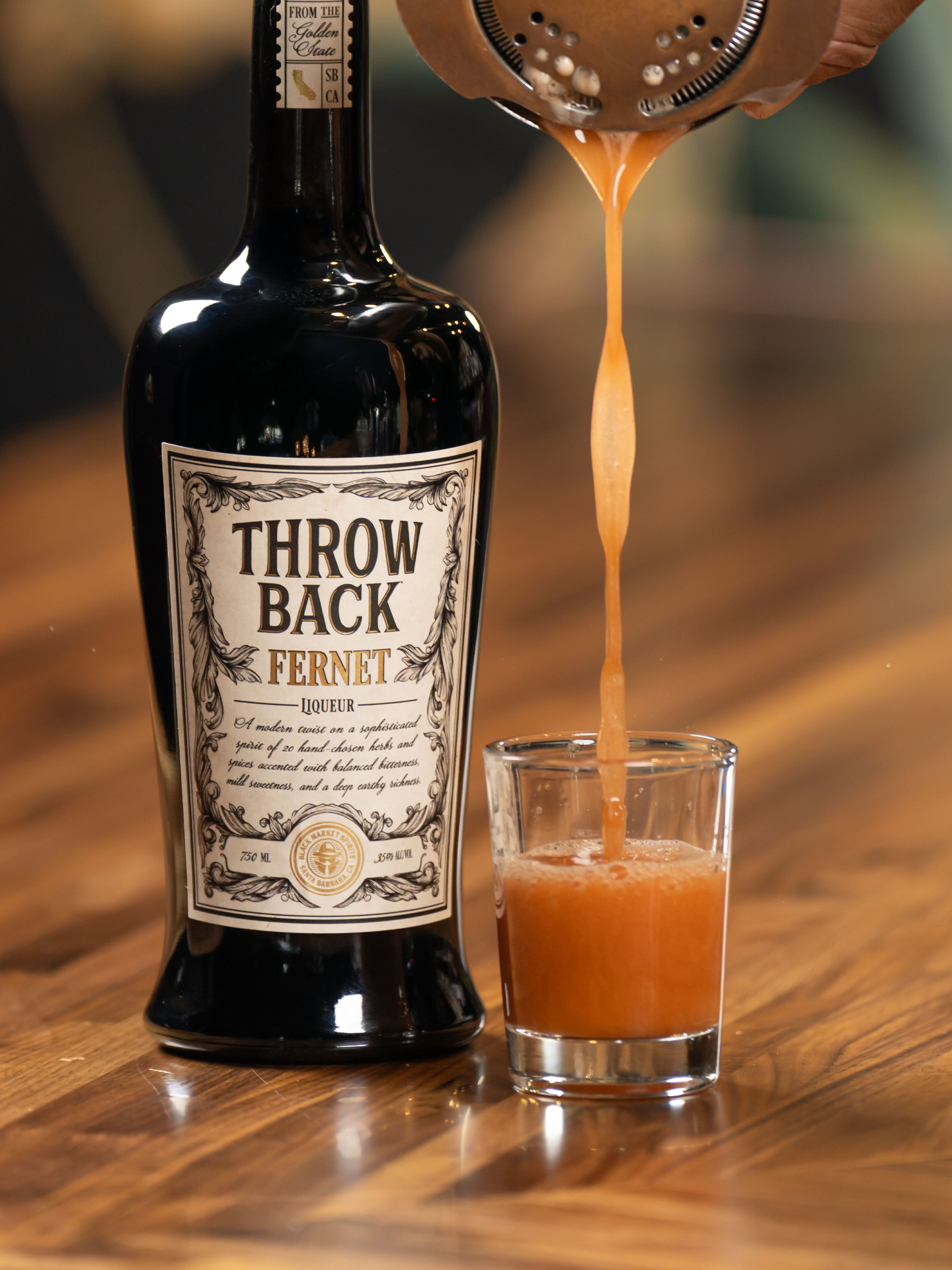 For over 200 years, Fernet has been a celebrated and somewhat obscure spirit enjoyed by sophisticates and mixologists from Italy and Argentina to San Francisco. Throw Back Fernet is a fresh California take on a traditional Italian Style of Amaro herbal liqueur. Our master distiller expertly blends together a complex mosaic of 20 hand-chosen herbs and spices while balancing the traditional Fernet bitterness with mild sweetness and a deep earthly richness. You'll be pleasantly surprised with the additional notes of cacao, mint and spice which will make your next cocktail not just sophisticated, but unforgettable.