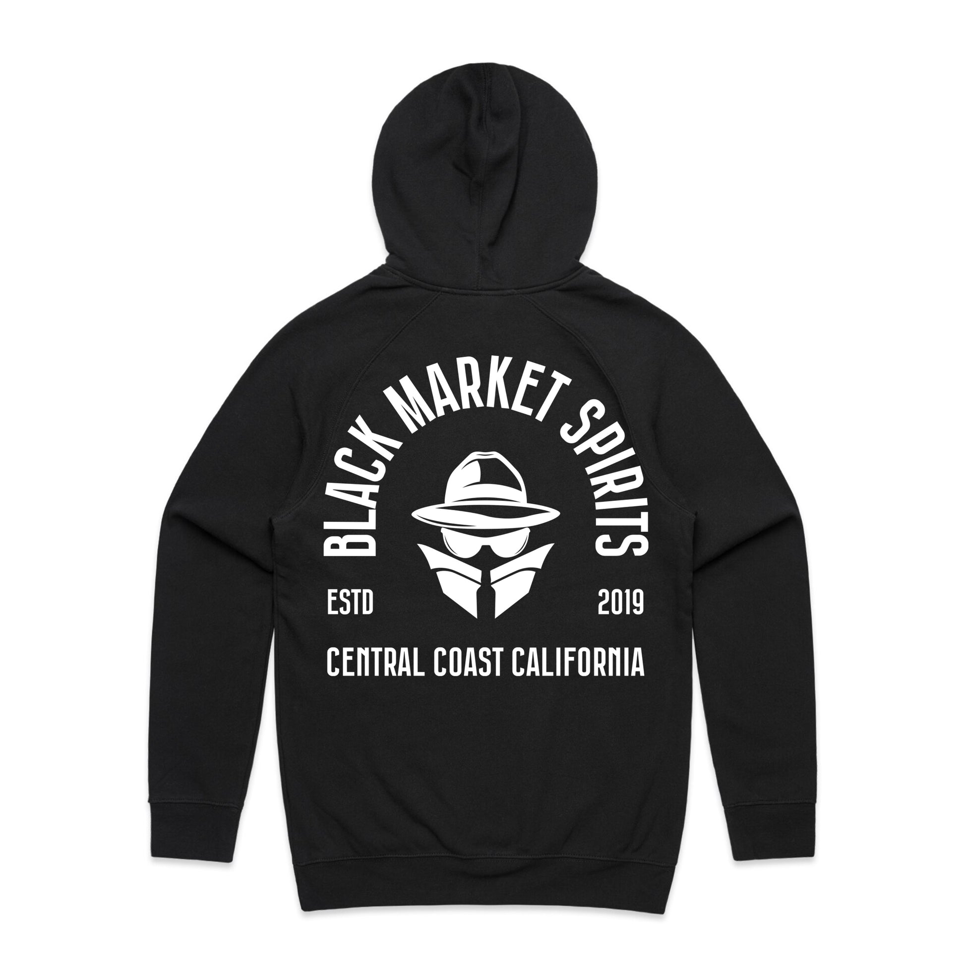 From our Core Collection, the Black Market Spirits Arch Logo Hoodie features clean timeless BMS and Central Coast branding on a tonal hoodie