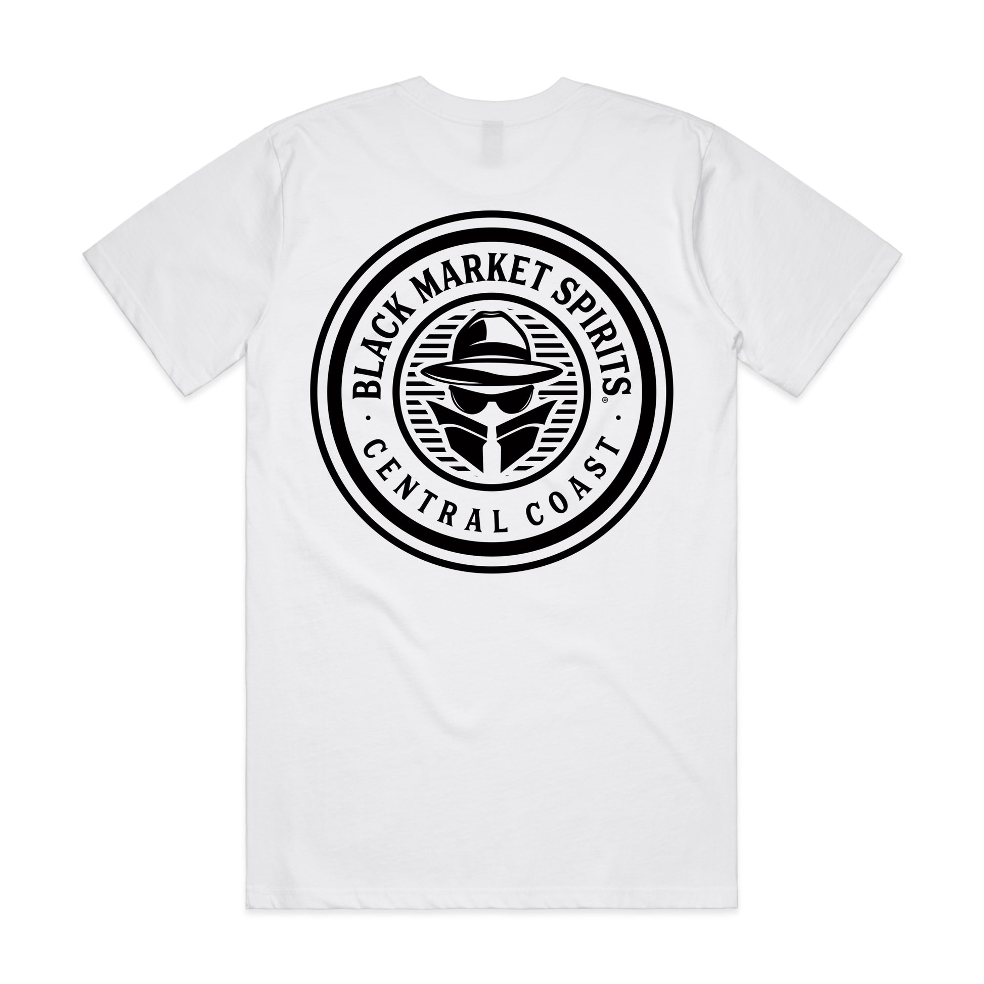 From our Core Collection, the Black Market Spirits Circle Logo Tee features clean timeless BMS and Central Coast branding on a tonal tee